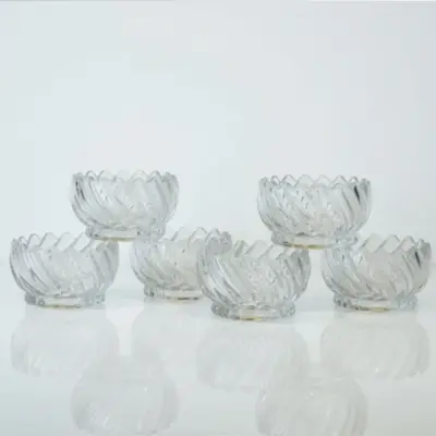 كاسات حلى زجاجية – 6 قطع كاسات حلى مصنوعة من زجاج عالي الجودة بتشكيلات راقية ومتنوعة، تضيف لمسة أناقة لتقديم الحلويات والمقبلات بذوق مميز.