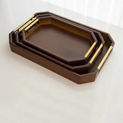 طقم صحون خشبية فاخرة – تصميم راقٍ وثقيل طقم تقديم خشبي أنيق بجودة عالية ووزن ثقيل يمنح طاولتك لمسة فخامة مميزة. مثالي للضيافة اليومية والمناسبات الخاصة، عملي وسهل الاستخدام مع مظهر راقٍ يلفت الأنظار.