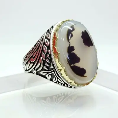 خاتم فضه عيار 925 على عقيق يمني مصور