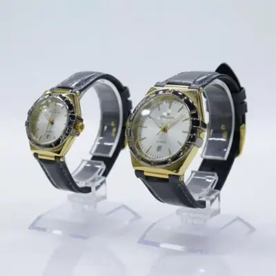 ساعات جلد شبيه الاوميجا طقم رجالي ونسائي